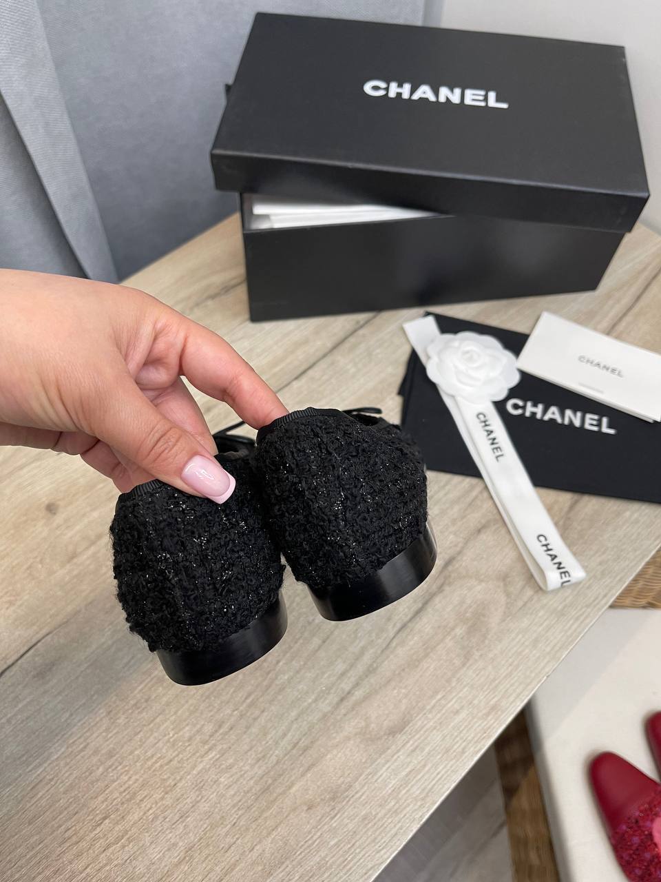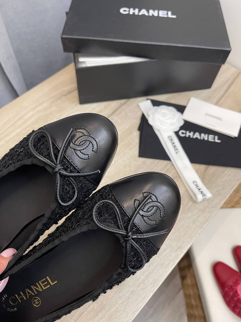 Эти балетки для женщин, которые стремятся подчеркнуть свою индивидуальность, станут настоящей находкой в гардеробе. Их лаконичный дизайн позволяет сочетать Chanel балетки с различными нарядами — от легких платьев до классических брюк. С каждым шагом вы будете ощущать, как мягкая подошва обнимает ваши ноги, даря непревзойденный комфорт. Кроме того, изысканная отделка и уникальные детали делают их настоящим произведением искусств, которое не оставит равнодушными любителей люксовой моды.