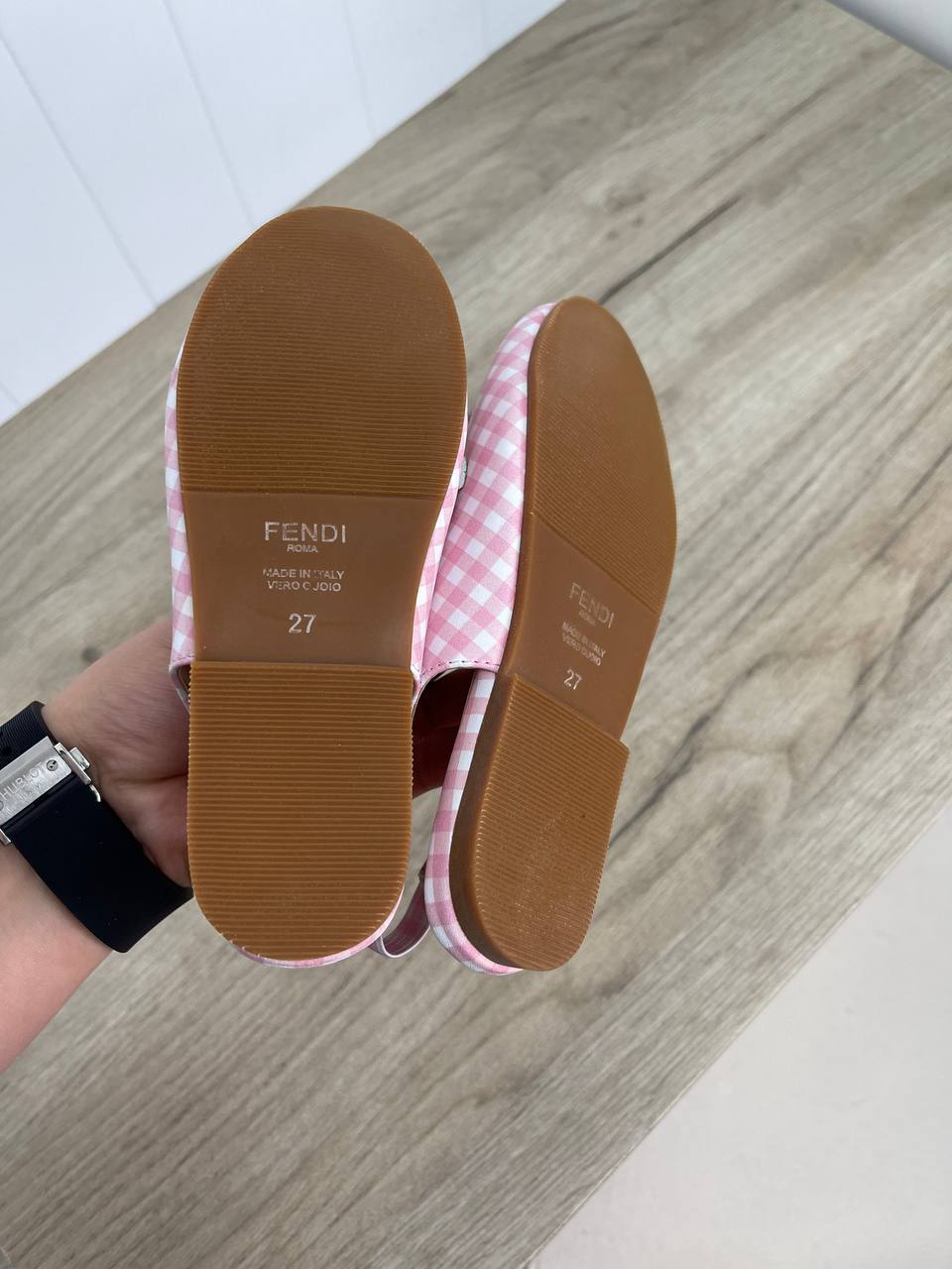 В вашем распоряжении уникальная возможность приобрести ультрамодные босоножки Fendi, сочетающие в себе элегантность и детскую функциональность. Они превосходно дополнят гардероб ребенка, легко комбинируясь с различными нарядами, будь то легкие платья или стильные шорты. Эту модель отличает внимание к деталям и характерный дизайн, который выделяет каждую пару из множества других.