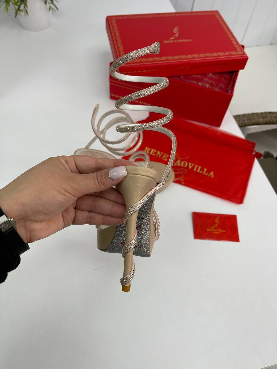 Приобретая босоножки люкс, вы получаете не только качественный продукт, но и возможность выразить свою индивидуальность. Этот аксессуар станет отличным дополнением к вашему гардеробу, позволяя создавать разнообразные образы для разных случаев. Не упустите шанс стать обладателем этой уникальной пары от Rene Caovilla, которая станет вашим верным спутником в мире моды и стиля. Позвольте себе ощутить все преимущества настоящей роскоши и уверенности, которые дарят эти великолепные босоножки.