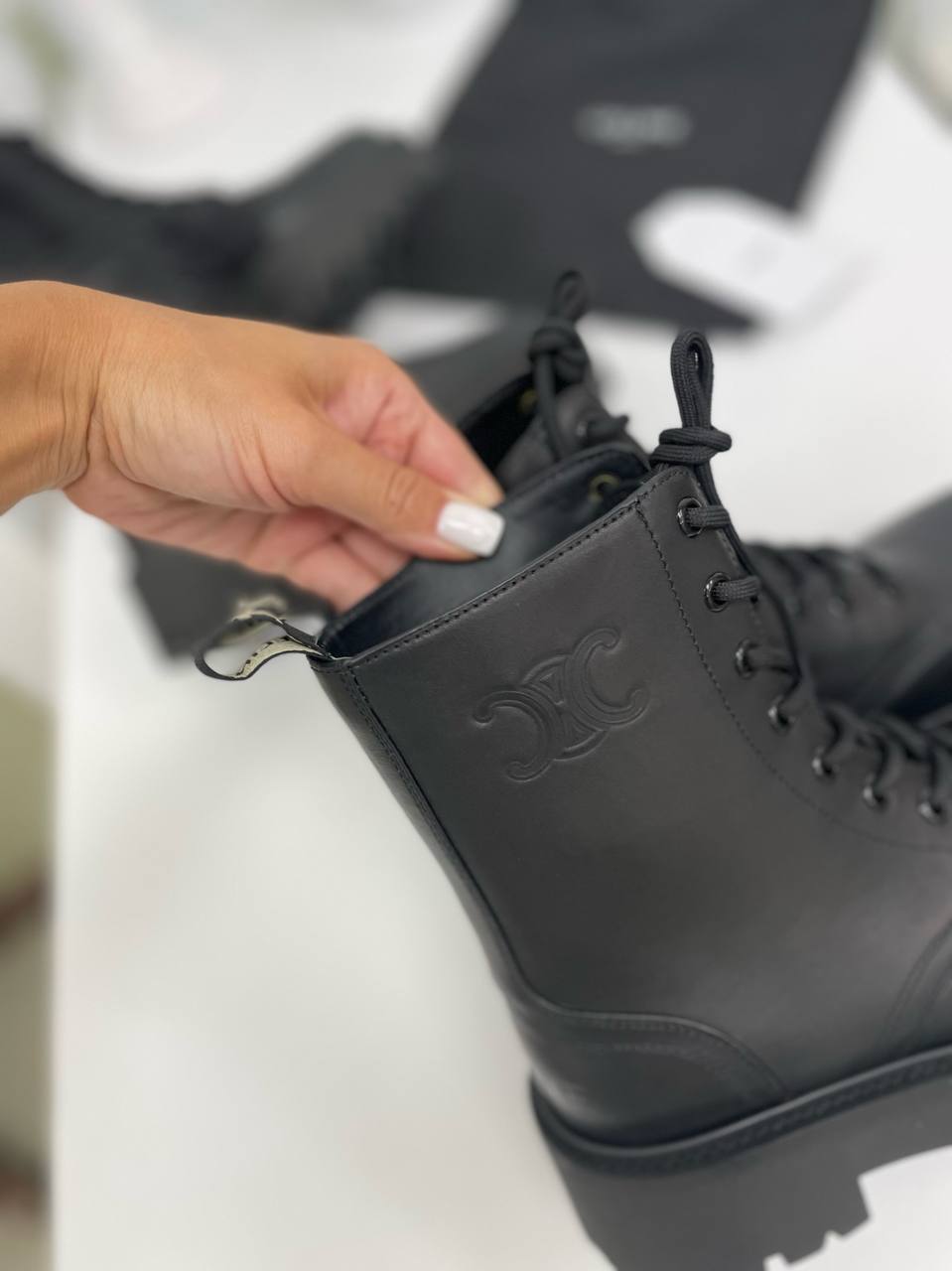 В мире высокой моды каждое изделие становится не просто одеждой, а настоящим произведением искусства. Женские ботинки черного цвета от бренда Celine — это не просто обувь, а символ утонченного вкуса и безупречного стиля. Эти ботинки идеально подходят для уверенных в себе женщин, которые ценят качество и элегантность в каждой детали. Сочетая в себе классические линии и современные акценты, Celine создает обувь, которая способна подчеркнуть индивидуальность и стать ярким акцентом в любом образе.