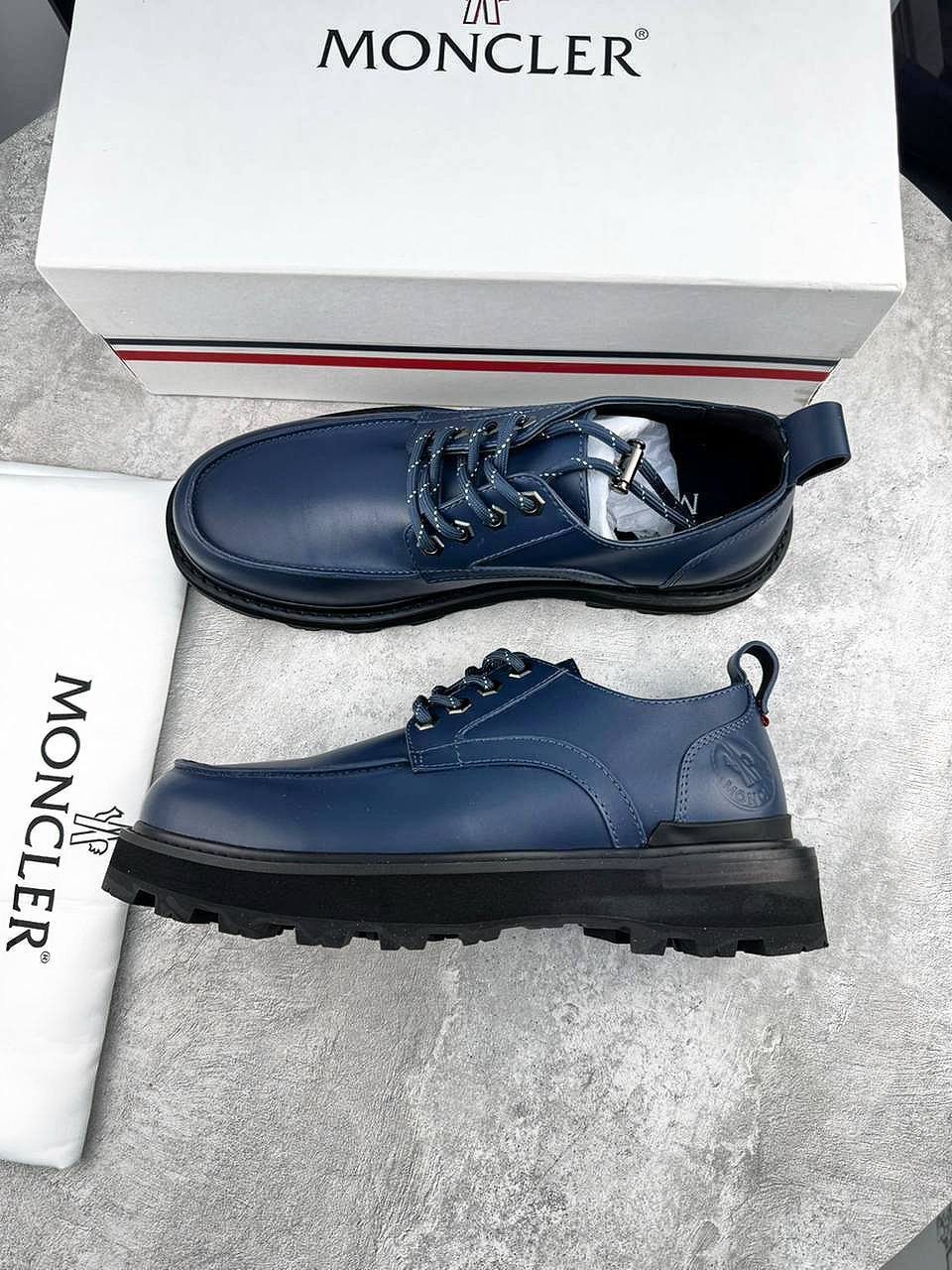 Кожаные ботинки темно-синие Moncler BP-944045 для стильных мужчин