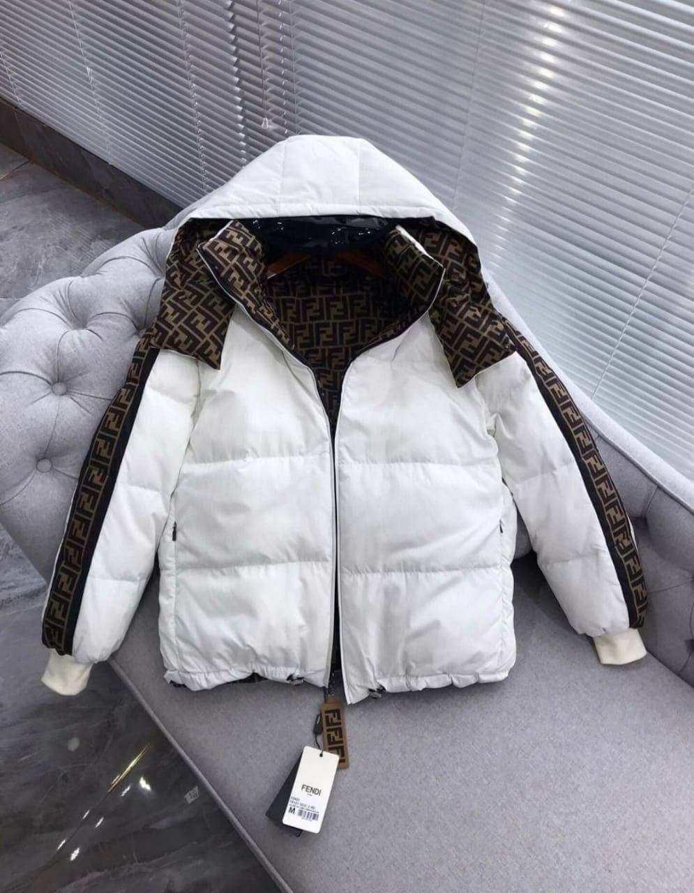 Данная куртка идеально подходит для женщин, стремящихся к элегантности и комфорту одновременно. Двухсторонний дизайн позволяет менять стиль в зависимости от настроения и ситуации, что делает ее универсальным решением для любого сезона. На одной стороне — классический, лаконичный стиль, а на другой — смелый и яркий принт, который добавит изюминку в повседневный лук. С помощью такой вещи можно легко создать как деловой, так и более расслабленный образ, что делает куртку Fendi BP-3782 настоящим мастхэвом в гардеробе.
