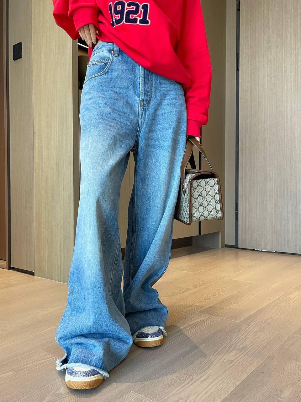 Каждая пара джинсов от Gucci — это не просто одежда, а произведение искусства, отражающее дух времени и тренды высокой моды. Уникальный крой и стильный дизайн позволяют создавать разнообразные образы, которые будут уместны как в офисе, так и на вечернем выходе. Эти джинсы можно сочетать с классической блузкой для создания строгого, но женственного образа, или же с ярким топом для более расслабленного и молодёжного стиля. Каждая деталь, от фурнитуры до стиля карманов, выполнена с безупречным вниманием к качеству, что делает их настоящей находкой для тех, кто стремится выделяться из толпы.