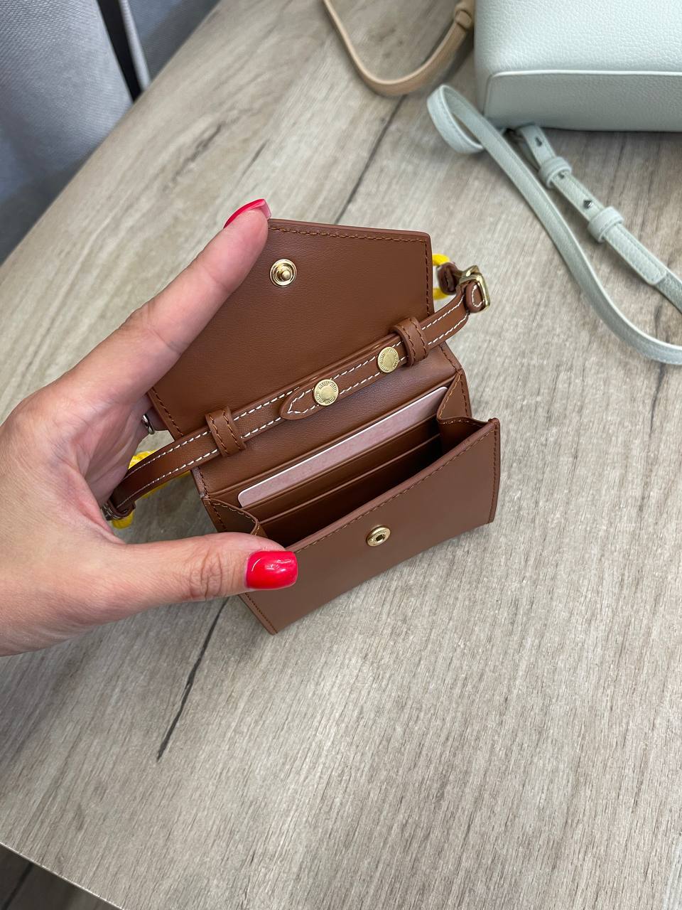 Каждая деталь этого аксессуара продумана до мелочей. Стильный брелок, который можно прикрепить к ключам или сумке, добавляет нотку шика и индивидуальности. Сложный дизайн и утонченные линии делают его не просто полезным предметом, но и элементом стиля, который подчеркивает ваш статус и вкус. Мастера Miu Miu, известные своим вниманием к деталям, создали этот картхолдер, чтобы он стал неотъемлемой частью вашего образа, дополняя его изысканностью и современными акцентами.