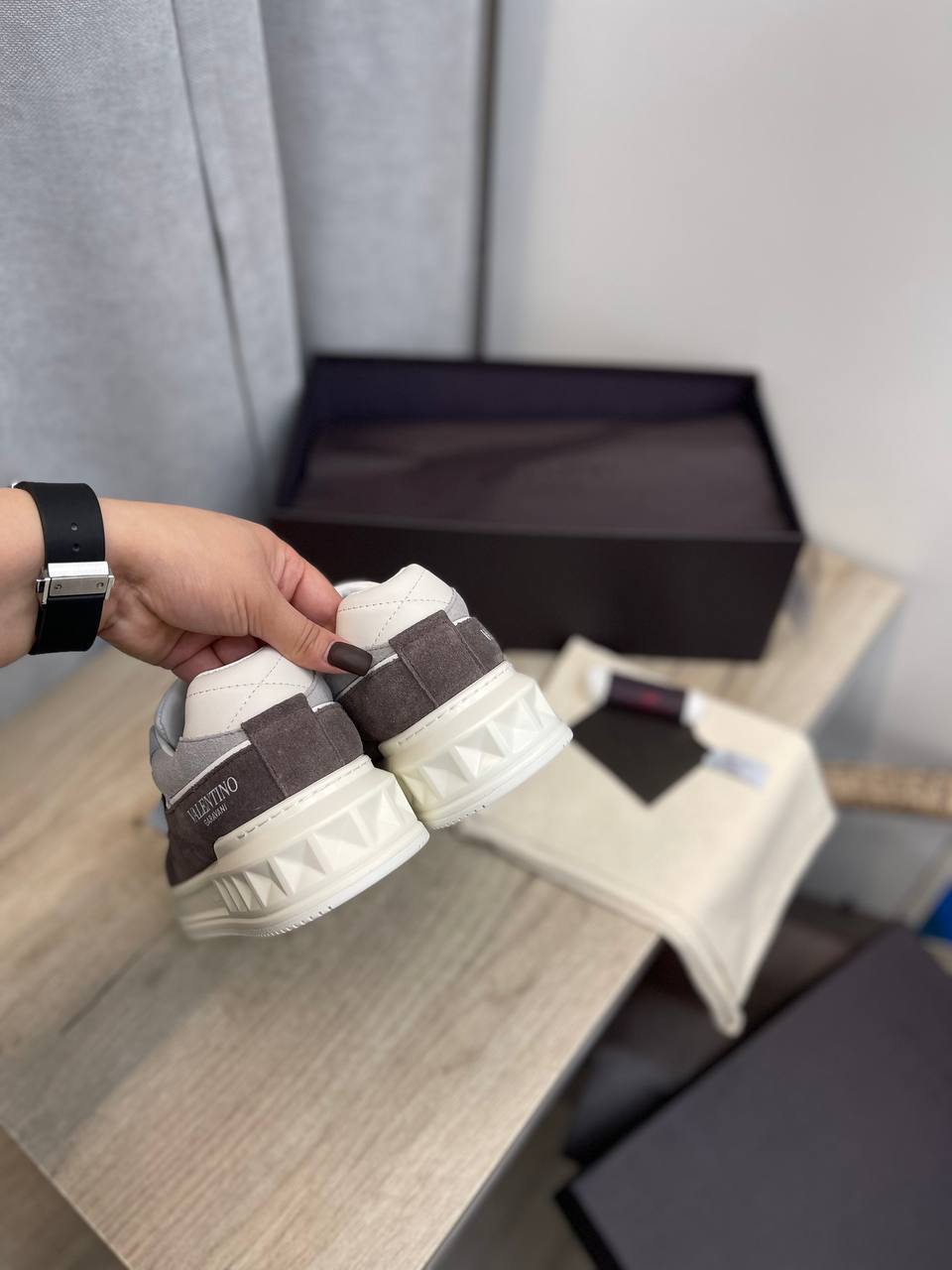 Дизайн Valentino BP-41584 поражает своей простотой и в то же время утончённостью. Каждая линия, каждая деталь продумана до мелочей, что делает эти кеды настоящим произведением искусства. Они легко вписываются в любой гардероб, будь то классический стиль или кэжуал, и прекрасно дополняют как джинсы, так и более строгие брюки. Мягкая подошва обеспечивает комфорт при длительной ходьбе, позволяя вам оставаться на высоте в любой ситуации, будь то прогулка по городу или встреча с друзьями.