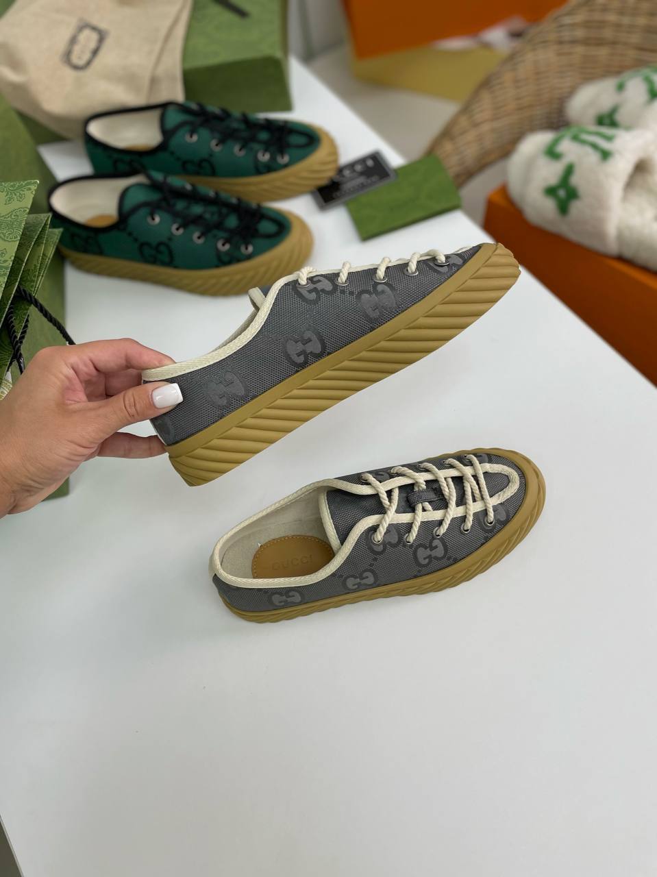 В мире моды, где каждая деталь имеет значение, кеды от Gucci становятся не просто обувью, а настоящим произведением искусства. Эти коллекционные кеды, созданные для тех, кто ценит стиль и качество, идеально вписываются в гардероб современных модников. Они сочетают в себе элементы классики и современные тенденции, что делает их универсальным аксессуаром для любого образа. Каждый шаг в таких кедах — это шаг по красной дорожке, где стиль и элегантность идут рука об руку, создавая неповторимый шарм.