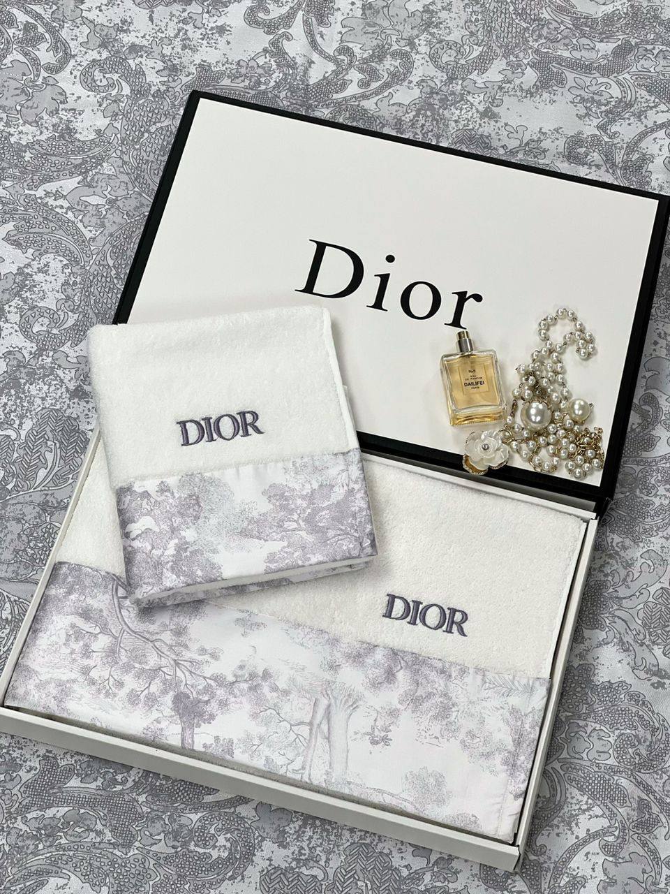 Каждый элемент этого комплекта создан с учетом высочайших стандартов, присущих культовому бренду Christian Dior. Полотенца обладают мягкой текстурой, что делает их незаменимыми после душа или ванной. Они не только обеспечивают комфорт, но и становятся настоящим акцентом в ванной комнате. Для мужчин и женщин, которые стремятся окружить себя только лучшими вещами, этот комплект станет идеальным выбором. Он подойдет как для личного использования, так и в качестве стильного подарка для близких, которые ценят изысканный вкус и качество.
