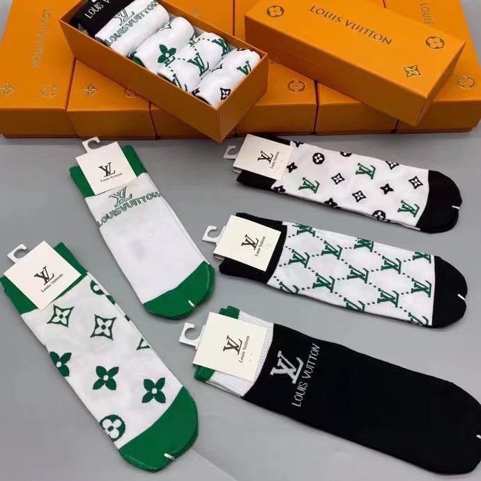 Каждая деталь в этом комплекте продумана до мелочей. Эстетика Louis Vuitton проявляется в уникальном дизайне, который сочетает в себе классические элементы и современные тенденции. Носки выполнены в стильных цветах и узорах, что делает их универсальным аксессуаром, который можно сочетать с различными стилями одежды. Они идеально подойдут как для делового стиля, так и для кэжуал-образов, добавляя изюминку в любой наряд. Ваша обувь будет выглядеть совершенно по-новому, когда вы добавите к ней этот шикарный элемент от знаменитого дома моды.