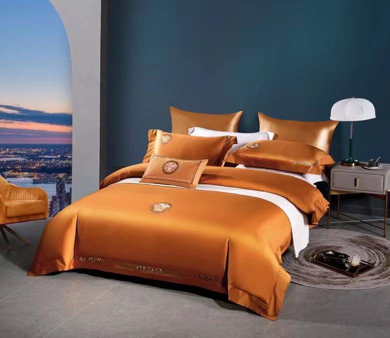 Оранжевый постельный комплект Versace BP-19101 для стильного интерьера
