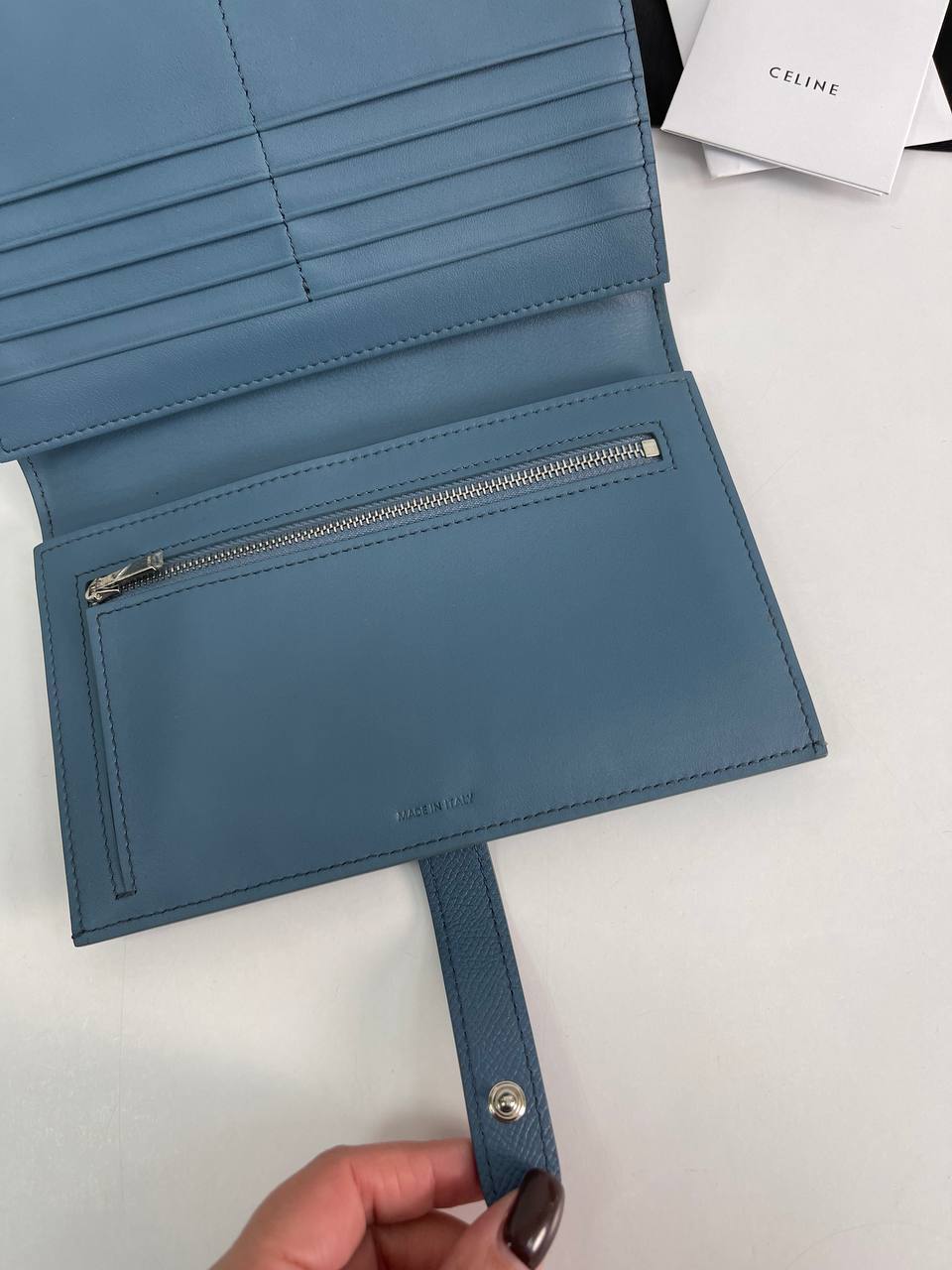 Дизайн кошелька продуман до мелочей: каждая строчка и каждая деталь выполнены с безупречным мастерством. Стильный логотип бренда на лицевой стороне подчеркивает статусность аксессуара, а его компактные размеры позволяют легко помещать его в любую сумку. Внутреннее пространство организовано таким образом, что вы сможете удобно разместить все необходимые карточки, купюры и мелкие монеты, не переживая о порядке.