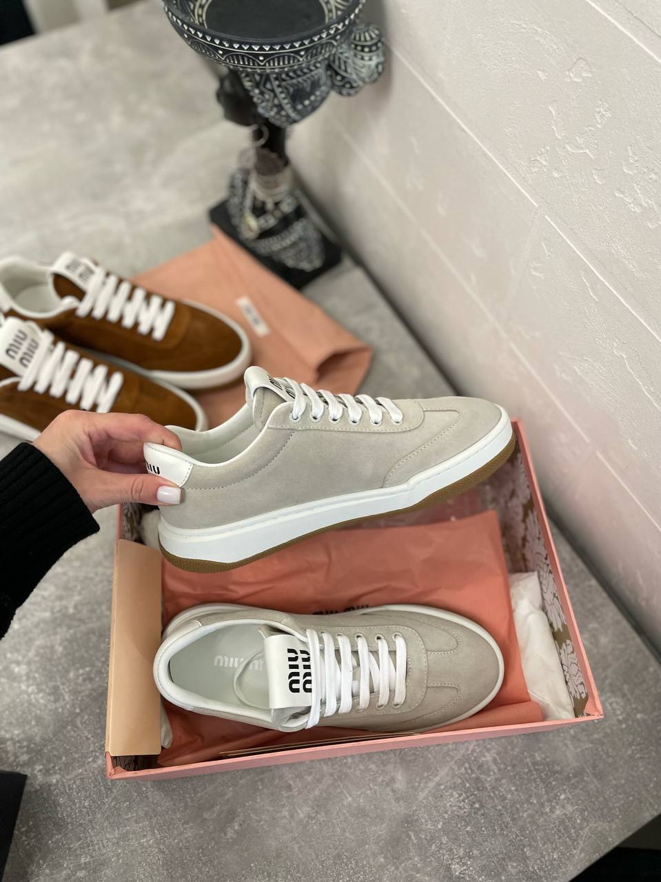 Каждая пара этих кроссовок выполнена из высококачественных материалов, которые обеспечивают долговечность и комфорт при носке. Мягкая подкладка и продуманная конструкция позволяют чувствовать себя уверенно и стильно в любой ситуации — будь то прогулка по городу, встреча с друзьями или активные выходные. Эти кроссовки подойдут как для мужчин, так и для женщин, желающих добавить в свой образ нотку роскоши и изысканности. Эстетика Miu Miu всегда была на шаг впереди, и эта модель не стала исключением, предлагая уникальное сочетание современного дизайна и классических элементов.