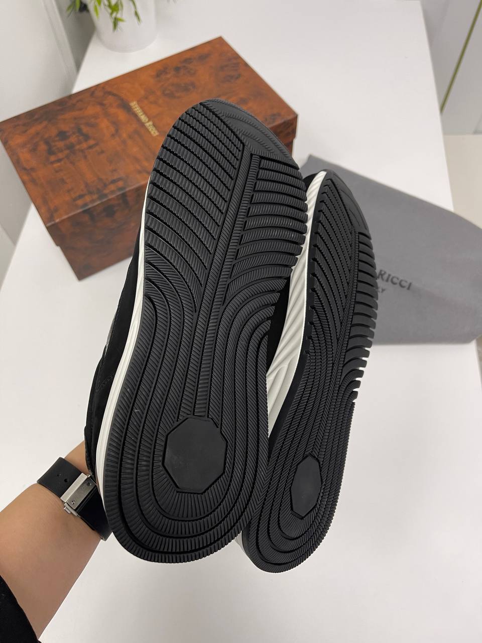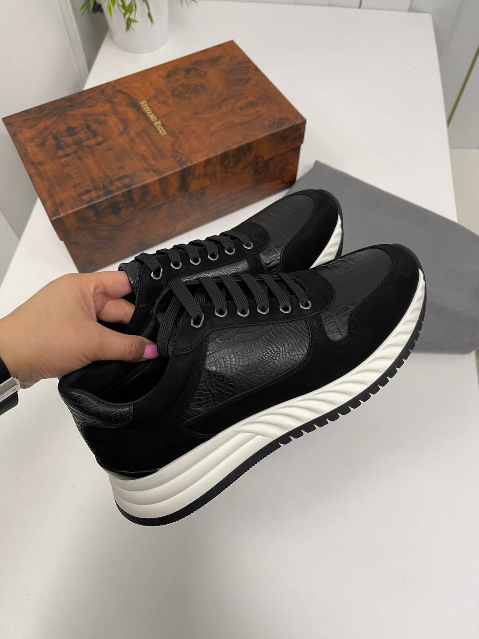 В заключение, черные кроссовки Stefano Ricci — это не просто обувь, а символ утонченного вкуса и стремления к совершенству. Они способны дополнить любой образ, вне зависимости от ситуации, и позволят своему владельцу выделиться из толпы. Инвестируя в такую пару, вы получаете не только стильный аксессуар, но и надежного спутника в мире моды, который будет радовать вас своим качеством и элегантностью на протяжении долгого времени.