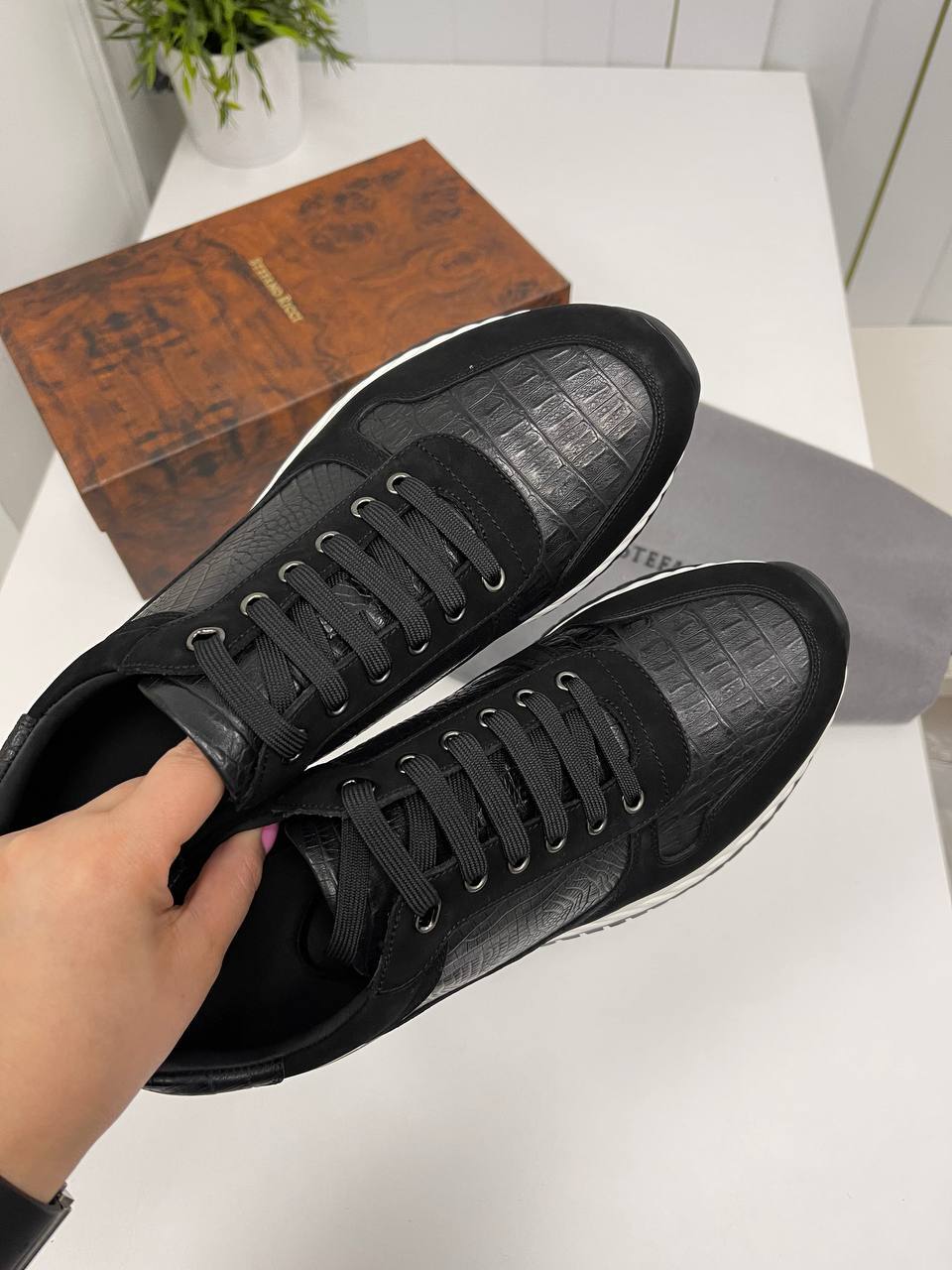 Элегантные черные мужские кроссовки Stefano Ricci для стильных мужчин