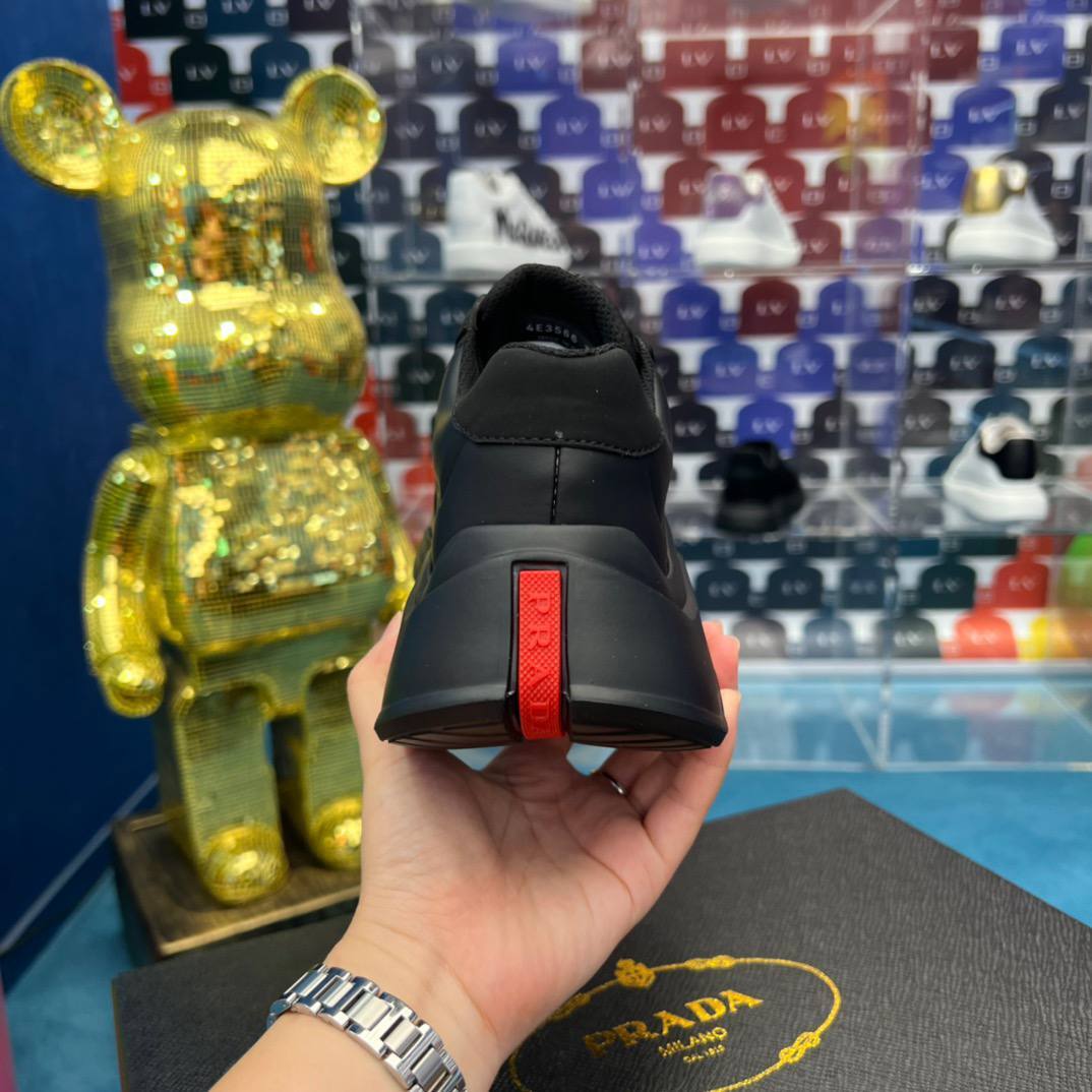 Каждый шаг в этих кроссовках — это шаг к новым вершинам стиля. Их элегантный черный цвет придаёт образу строгость и одновременно создает эффектный контраст с любыми нарядами. Независимо от того, выбираете ли вы классические джинсы или стильные брюки, кроссовки Prada станут ярким акцентом вашего образа. Они идеально дополнят как деловой, так и кэжуал стиль, позволяя вам оставаться в тренде в любой ситуации.