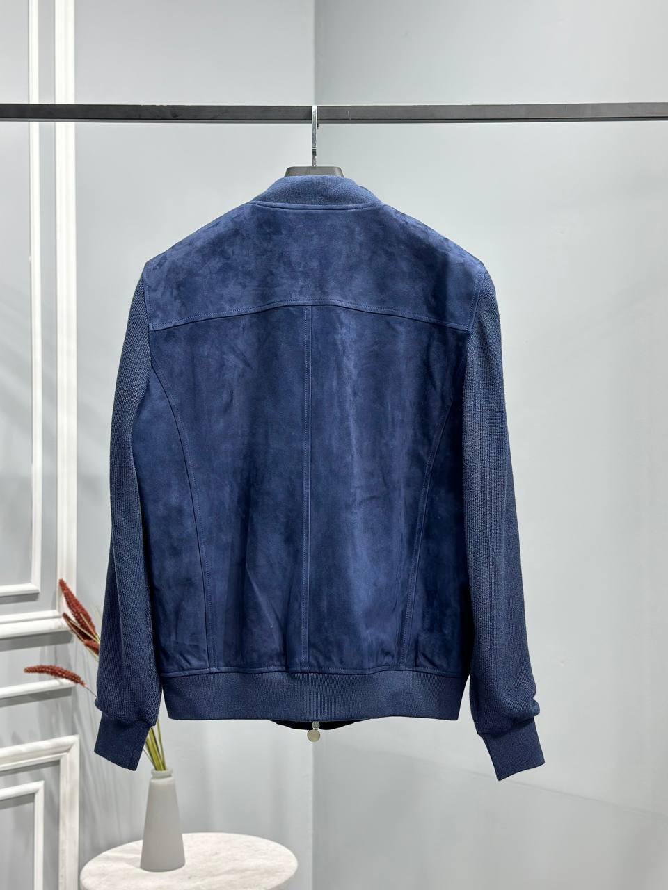 Синяя замшевая куртка с кашемировыми рукавами от Kiton