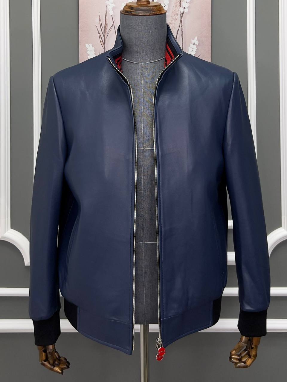 Каждый элемент этой куртки продуман до мелочей. Темно-синий цвет придает ей универсальность, позволяя сочетать с различными стилями и оттенками. Она легко комбинируется как с классическими брюками, так и с более расслабленной одеждой, что делает ее подходящей для разных случаев — от деловых встреч до вечерних прогулок. Кожаная текстура куртки подчеркивает мужественность и харизму, а также создает эффектный контраст с другими материалами, что добавляет образу динамичности и выразительности.