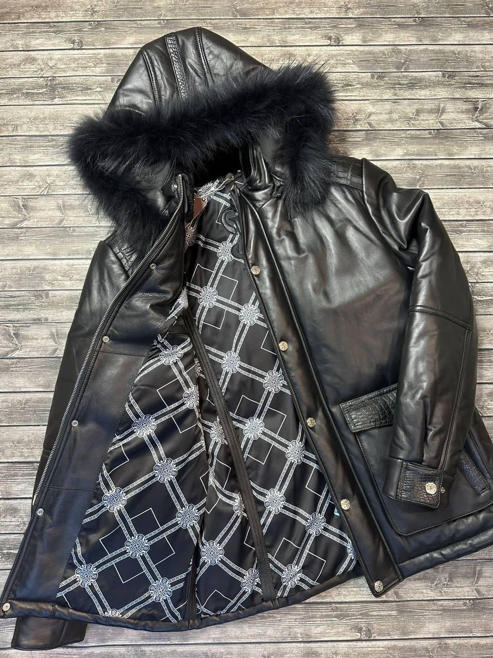 Каждая деталь удлинённой кожаной куртки проработана с безупречной точностью, что делает её настоящим произведением искусства. Использование кожи крокодила добавляет не только визуального интереса, но и особой текстуры, которая привлекает взгляды и вызывает восхищение. Эта куртка станет не просто частью вашего гардероба, а настоящим акцентом, который будет подчеркивать ваш стиль и вкус. Мужчины, выбирающие данное изделие, делают акцент на качестве и эксклюзивности, что говорит о высоком уровне их притязаний к моде.