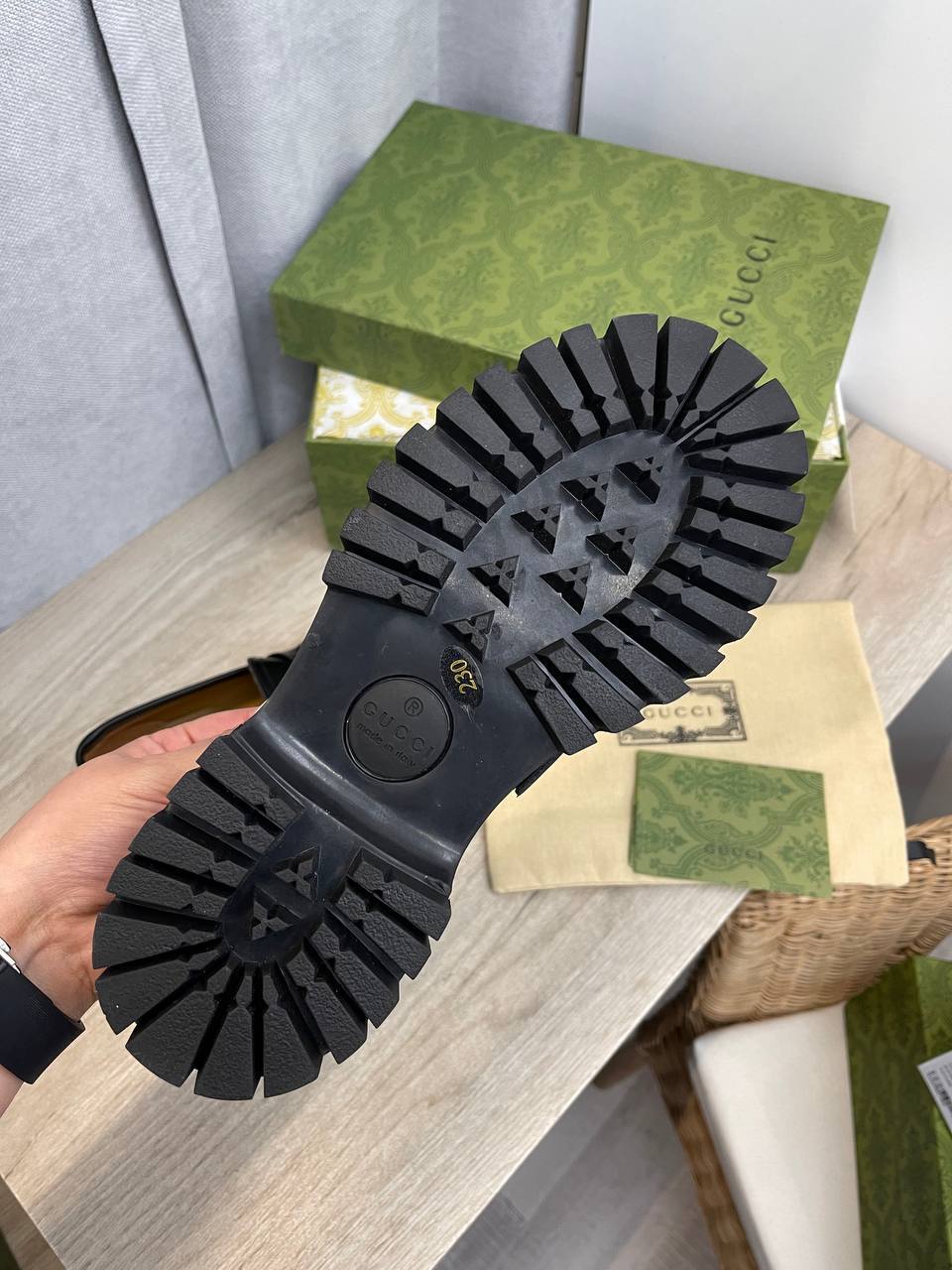 Каждая пара лоферов Gucci — это результат тщательной работы мастеров, которые используют только лучшие материалы. Кожа, из которой изготовлены эти лоферы, отличается высокой прочностью и долговечностью, что гарантирует их долговечное использование. Удобная подошва и продуманный дизайн обеспечивают комфорт при носке, позволяя вам оставаться на ногах весь день без чувства усталости. Элегантные линии и лаконичные формы делают эту модель идеальным дополнением к любому образу, подчеркивая вашу индивидуальность и статус.