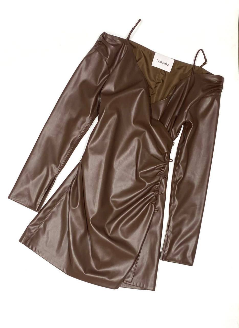 Изготовленное с учетом последних тенденций, это платье подойдет как для вечерних выходов, так и для дневных мероприятий. Легкая текстура ткани и продуманный крой делают его невероятно комфортным, позволяя вам чувствовать себя уверенно и стильно. Бренд Nanushka всегда ориентируется на актуальные модные течения, и данное платье не стало исключением. Каждый элемент, от фасона до отделки, продуман до мелочей, что подчеркивает индивидуальность и утонченный вкус своей обладательницы.