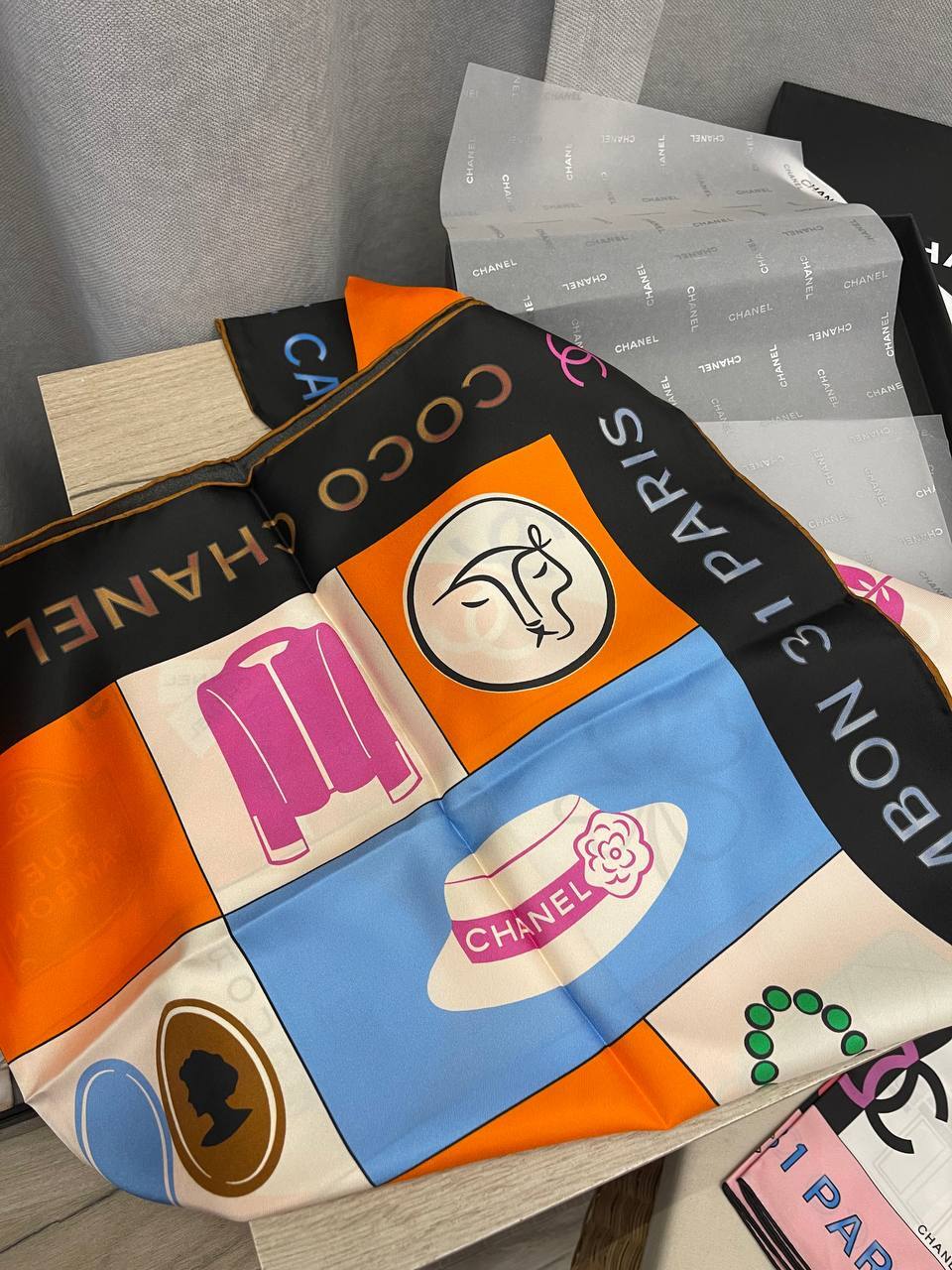 Платок от Chanel — это универсальный аксессуар, который идеально вписывается в повседневный гардероб. Его можно носить как на улице, так и на светских мероприятиях, добавляя в образ нотки шарма и изысканности. Сочетание нежных оттенков и оригинального дизайна делает этот платок настоящей находкой для тех, кто ценит стиль и комфорт. Благодаря своей легкости и мягкости, он приятно облегает шею, обеспечивая не только эстетическое удовольствие, но и комфорт в носке. Аксессуар прекрасно дополняет как классические, так и современные образы, позволяя каждой женщине выразить свою индивидуальность.