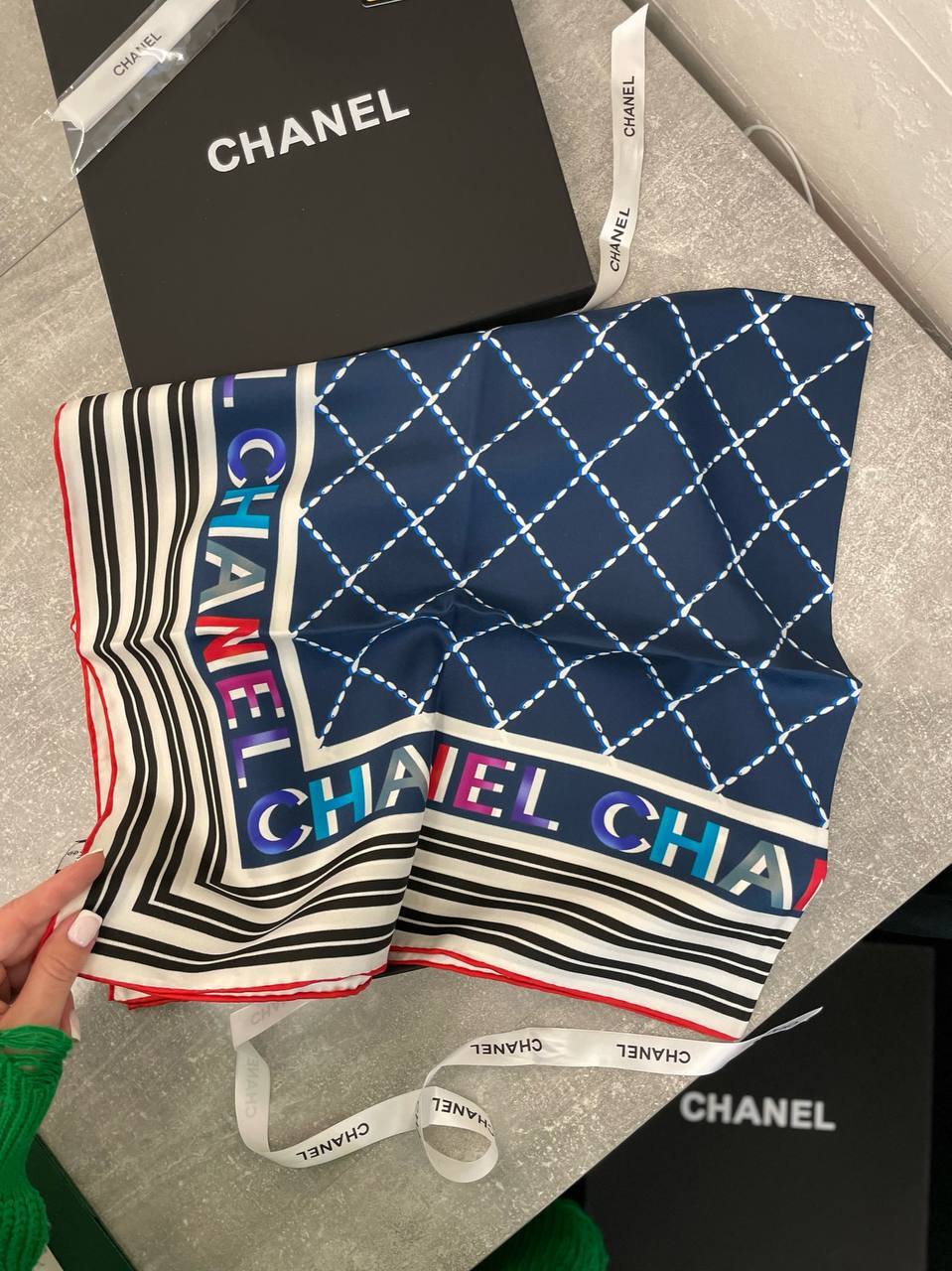 Коллекционный платок от знаменитого бренда Chanel — это не просто аксессуар, а настоящая находка для тех, кто ценит стиль и утонченность в каждой детали. Он выполнен из высококачественных материалов, что обеспечивает не только его долговечность, но и невероятную мягкость, позволяя носить его с комфортом в любое время года. Этот платок станет идеальным дополнением к вашему гардеробу, подчеркивая вашу индивидуальность и статус. Уникальный дизайн делает его универсальным: его можно носить как на шее, так и в качестве акцента на сумке или волосах, что открывает безграничные возможности для создания стильных образов.
