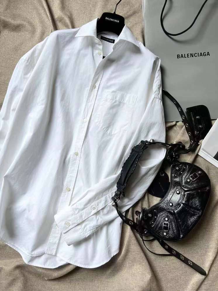 Каждый элемент данной рубашки продуман до мелочей. Используемые ткани обеспечивают комфорт и свободу движений, что делает её идеальным выбором для долгих дней в офисе или вечерних мероприятий. Balenciaga, как всегда, радует своих поклонников оригинальными решениями, сочетая классические элементы с современными акцентами. Эта рубашка станет не только стильным, но и практичным выбором для модников, которые хотят выглядеть безупречно в любой обстановке.