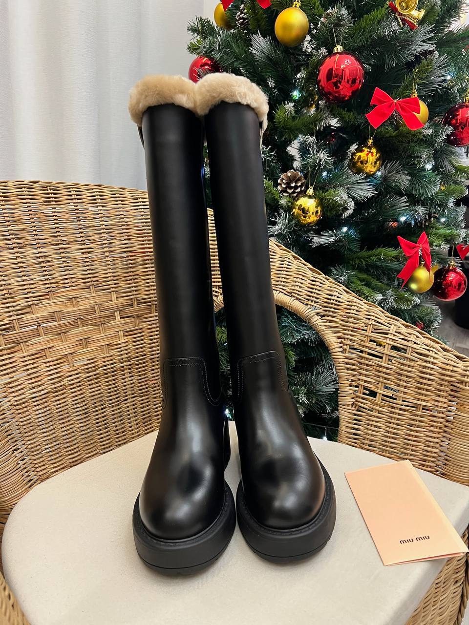 Стильные сапоги от Miu Miu подойдут как для городских прогулок, так и для более торжественных мероприятий, благодаря своему универсальному дизайну. Их элегантные линии и тщательно продуманные детали делают эту модель настоящим произведением искусства. Мастера бренда уделили внимание каждой строчке, что позволяет говорить о высоком уровне исполнения. Модель прекрасно сочетается с различными нарядами, будь то джинсы, платья или юбки, создавая гармоничный образ, который будет привлекать взгляды окружающих.