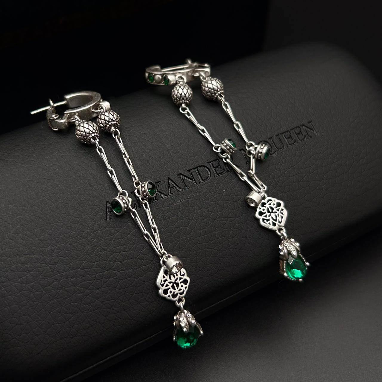 Каждая деталь этих серьг продумана до мелочей, что делает их настоящим воплощением роскоши и стиля. Бренд Alexander McQueen всегда славился смелыми решениями и уникальными формами, и данная модель не исключение. Серьги выполнены из высококачественных материалов, что гарантирует их долговечность и привлекательный внешний вид. Они идеально подойдут для тех, кто ценит не только красоту, но и качество в своих аксессуарах.