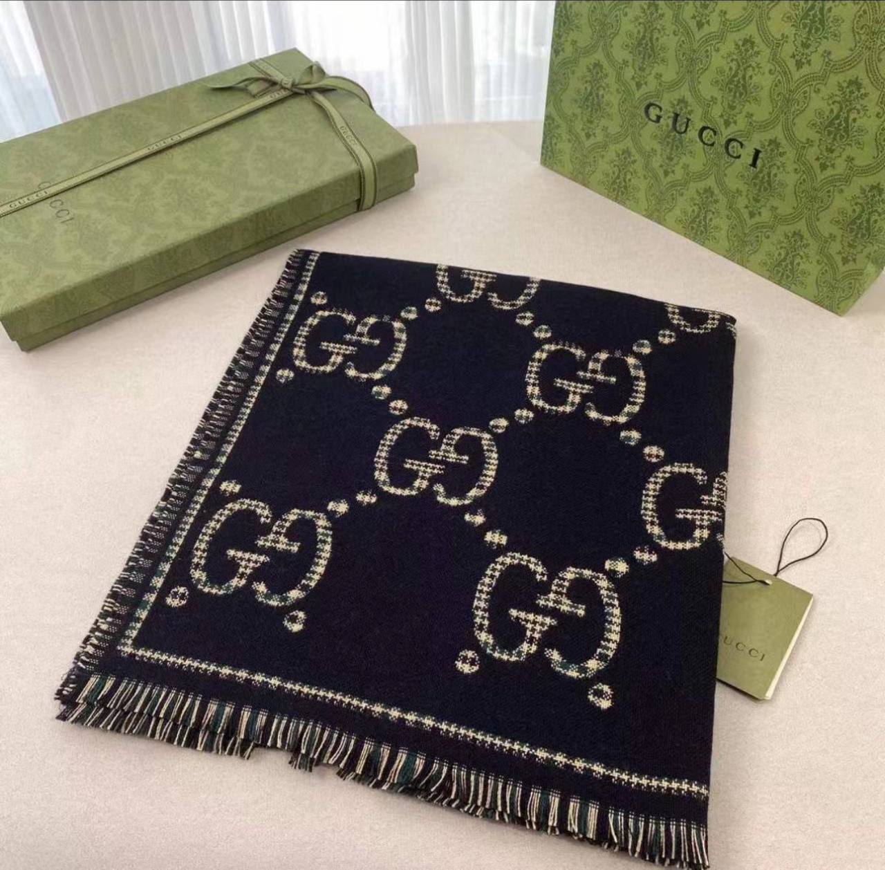 Сочетание элегантного дизайна и утонченной цветовой палитры позволяет этому шарфу гармонично вписываться в любой гардероб. Он прекрасно дополняет как повседневные, так и более формальные наряды, что делает его универсальным аксессуаром для мужчин, стремящихся к стилю и комфорту. Носить такой шарф — значит не только следовать модным тенденциям, но и заявлять о своем вкусе и предпочтениях, ведь Gucci — это символ роскоши и утонченности на протяжении многих лет.