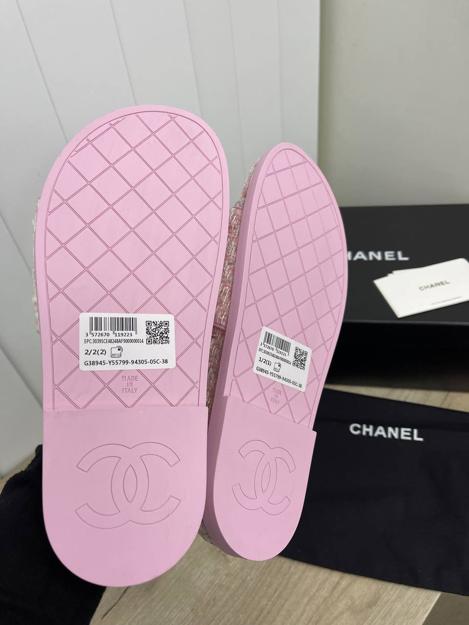 Каждая пара шлепанцев Chanel BP-29402 выполнена из высококачественных материалов, что гарантирует долговечность и комфорт при носке. Уникальная конструкция позволяет обуви легко адаптироваться к любой форме стопы, обеспечивая идеальную посадку и поддержку. Эти шлепанцы подойдут как для пляжных прогулок, так и для вечерних выходов, когда важен каждый элемент образа. Они станут неотъемлемой частью вашего летнего гардероба, добавляя изысканности даже в самые простые наряды.