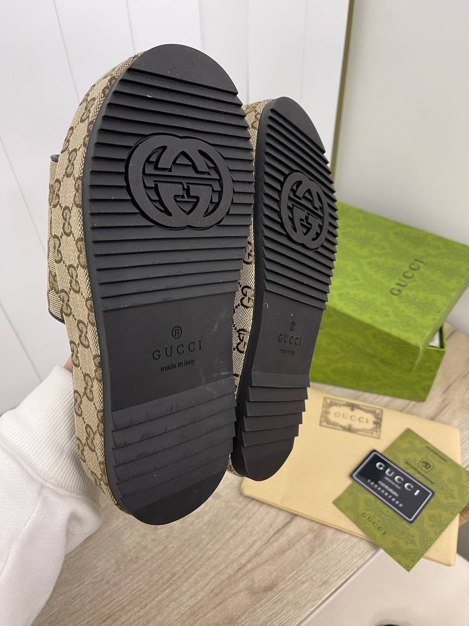 Кроме того, шлепанцы Gucci BP-32812 идеально подходят для путешествий. Легкие и удобные, они станут вашим надежным спутником на пляже, в отеле или во время прогулок по городу. Их можно легко упаковать в чемодан, не беспокоясь о том, что они займут много места. Каждый раз, когда вы будете надевать эти шлепанцы, вы будете чувствовать, что находитесь в окружении стиля и роскоши. Они станут не просто обувью, а настоящим атрибутом вашего образа жизни, подчеркивая ваши высокие стандарты и безупречный вкус.