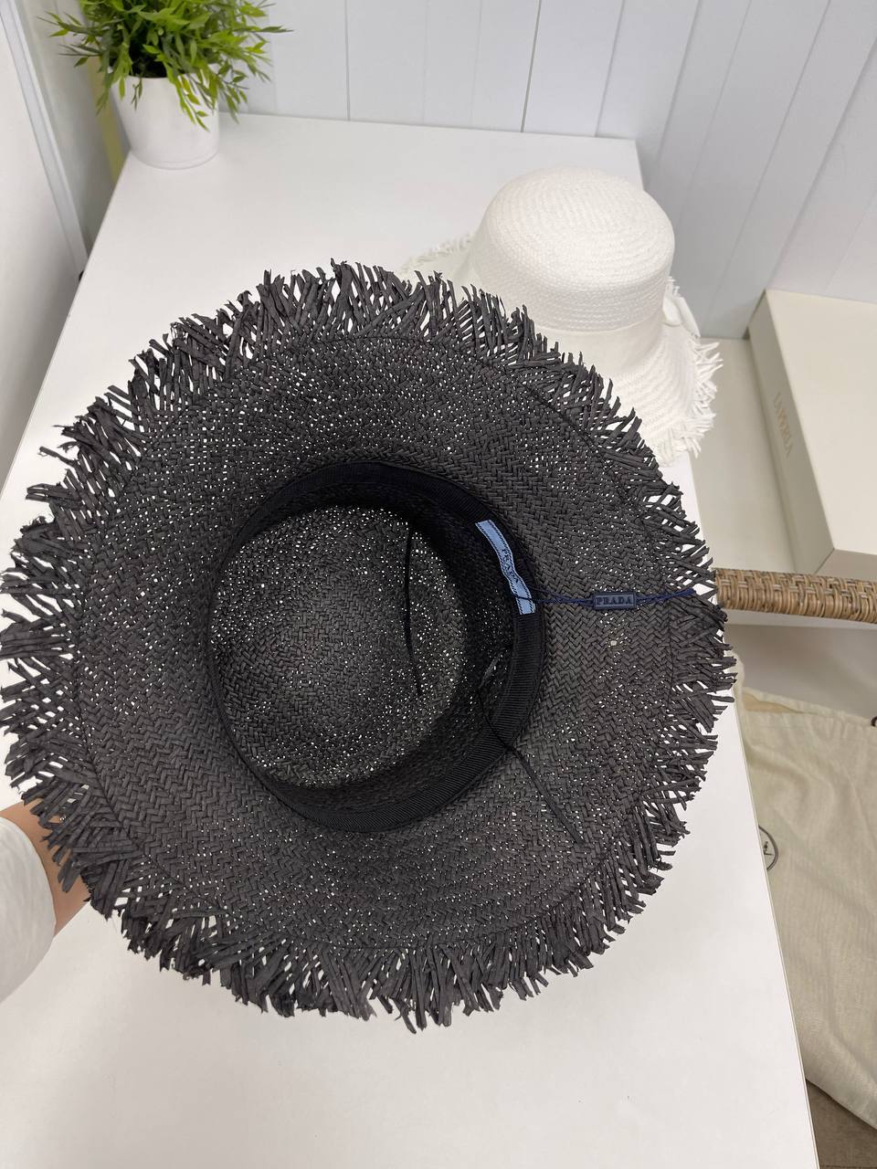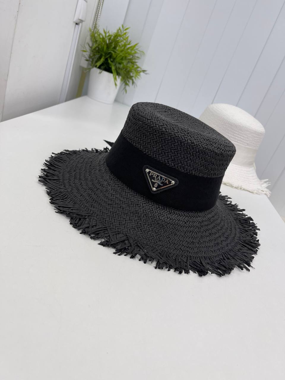 Каждая деталь шляпы продумана до мелочей, что подчеркивает высокую степень мастерства, присущую Prada. Элегантная отделка и изысканный силуэт делают этот аксессуар поистине уникальным. Вы сможете легко комбинировать шляпу с различными стилями одежды — от романтических платьев до строгих костюмов. Этот предмет гардероба станет вашим верным спутником в любых ситуациях, будь то прогулка по городу или участие в светском мероприятии. Шляпа не только защитит от солнечных лучей, но и добавит вашему образу шарма и загадки.