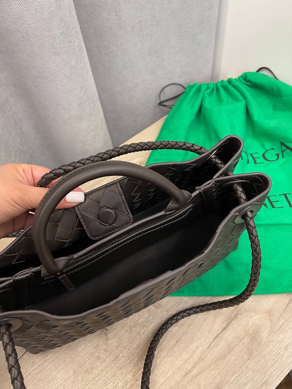 Одним из главных преимуществ данной модели является её универсальность. Сумка гармонично вписывается в любой стиль, будь то классический, кэжуал или даже спортивный. Она прекрасно сочетается с различными нарядами — от строгих офисных комплектов до легких летних платьев. С её помощью можно создать как лаконичный, так и более яркий образ, добавив акцент на детали. Кроме того, сумка Bottega Veneta отлично подойдет для создания многослойных образов, что актуально в сезонах с переменчивой погодой.