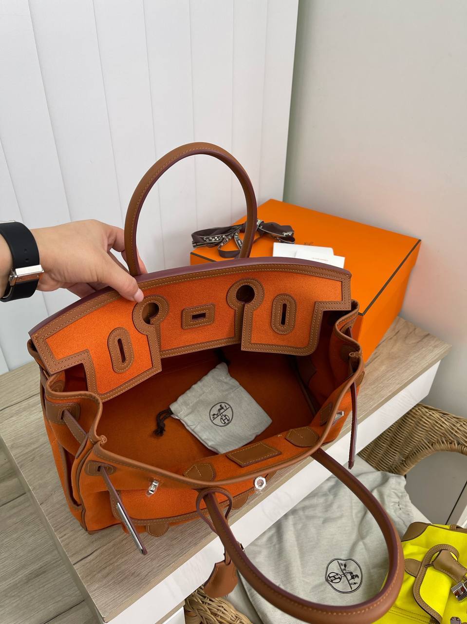 Созданная для тех, кто ценит эксклюзивность и стиль, Hermes Birkin Cargo 35cm идеально вписывается в образ модницы, которая не боится экспериментировать с образами. Эта сумка станет не только практичным аксессуаром для повседневного использования, но и настоящим произведением искусства, способным вызвать восхищение. Благодаря своей уникальной форме и элегантным линиям, она привлекает внимание и подчеркивает статус своей обладательницы, что делает её идеальным дополнением к любому наряду.