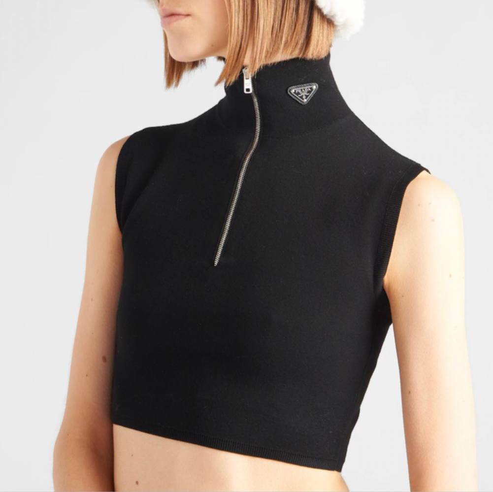 Каждый элемент топа продуман до мелочей. Используемые материалы не только приятны на ощупь, но и обеспечивают комфорт в носке. Prada всегда выбирает только лучшие ткани, что делает изделия долговечными и стойкими к износу. Этот топ станет неотъемлемой частью вашего гардероба, который будет радовать вас своим внешним видом и качеством на протяжении многих сезонов. Модники, ценящие люксовую моду, оценят этот топ за его способность легко вписываться в различные стили, будь то минимализм или экстравагантность.