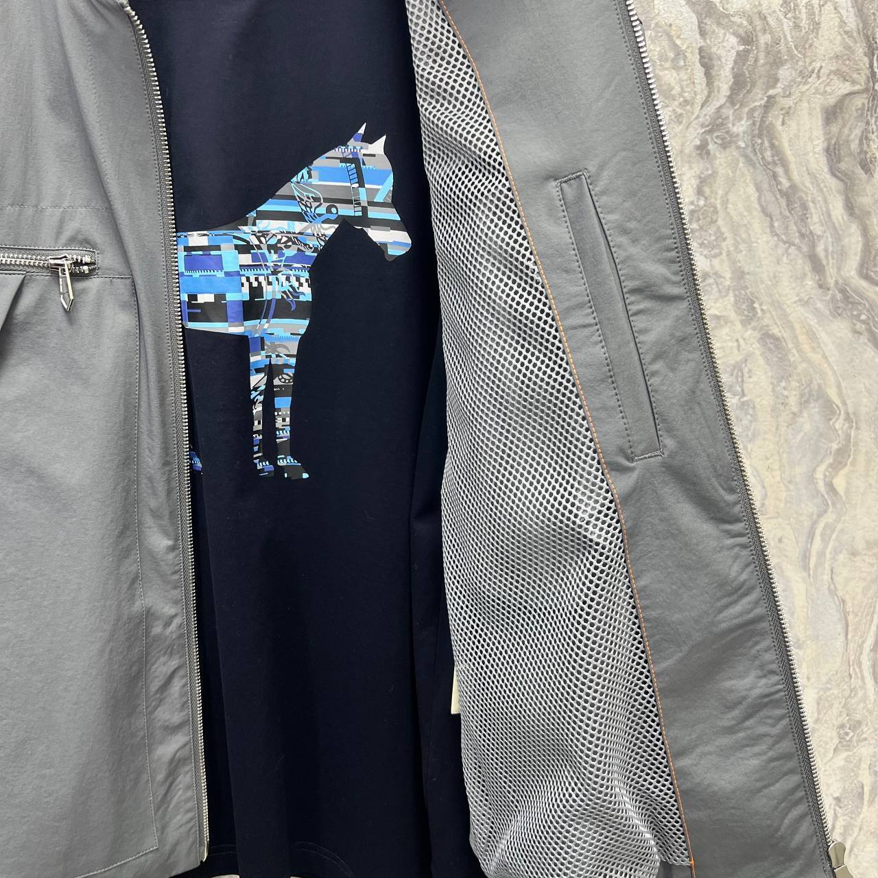 Неотъемлемой частью дизайна ветровки является внимание к деталям. Каждый шов выполнен с высокой точностью, а фурнитура подчеркивает премиальный статус изделия. Благодаря этому, Hermes BP-31389 не только выглядит стильно, но и служит долго, сохраняя свои первоначальные качества. Эта ветровка станет идеальным спутником для тех, кто ценит не только внешний вид, но и долговечность своей одежды. Носите ее с гордостью, зная, что вы обладаете уникальным предметом, который выделяет вас среди других.
