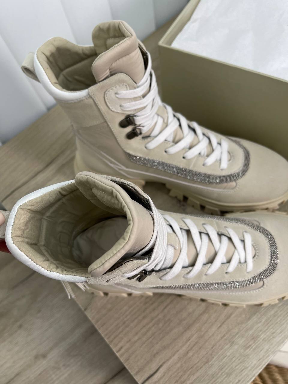 Каждая деталь высоких сникеров BC продумана до мелочей. Мягкая замша обеспечивает идеальную посадку и комфорт при носке, а тафта добавляет изысканный блеск, который привлекает внимание. Эти сникеры не просто обувь, а элемент имиджа, который подчеркивает статус и вкус своего владельца. Их можно сочетать с джинсами, брюками или даже шортами, создавая стильные и гармоничные образы, которые подойдут для любого повода.