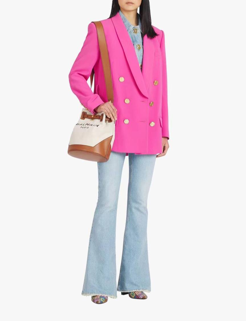 Ключевым элементом этого жакета является его пояс, который не только акцентирует внимание на талии, но и добавляет образу особую изюминку. Он способен преобразить любой наряд, придавая ему уникальность и стиль. Balmain, как известный бренд, всегда ставит на первое место качество материалов и внимание к деталям, что делает их изделия настоящими шедеврами. В этом жакете каждая деталь продумана до мелочей, от текстуры ткани до фурнитуры, что подчеркивает его статус в мире люкс моды.